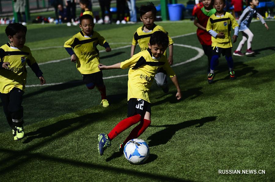 Детский футбольный матч в городе Синин