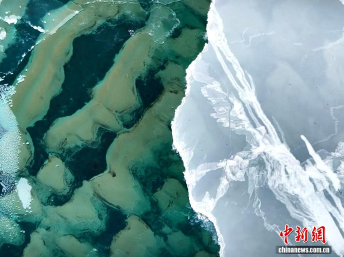 Ледяные узоры зимнего озера Цинхай с высоты птичьего полета