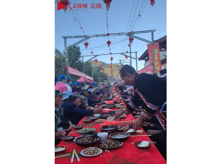 Традиционный банкет на длинной улице народности хани в провинции Юньнань