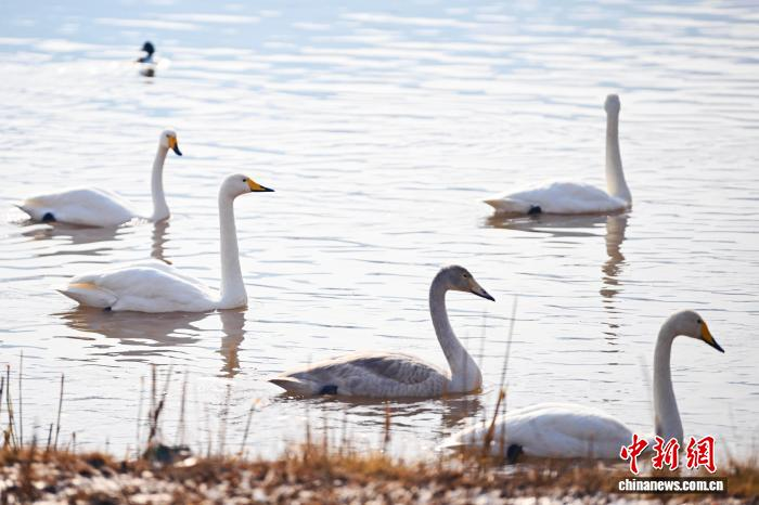 Белые лебеди из Сибири прилетели на побережье Хуанхэ в Ланьчжоу