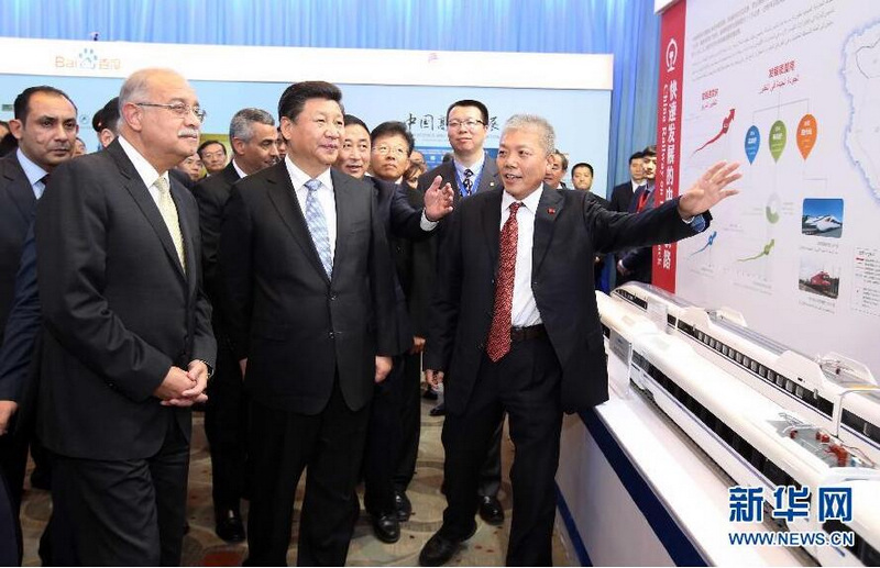 После встречи Си Цзиньпин и Шериф Исмаил совместно посетили Выставку высокотехнологичных товаров Китая. --0--