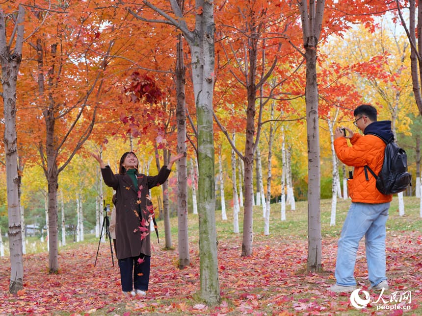 22 октября, «Жэньминь жибао» онлайн -- В парке «Юэхэ» в Чанчуне /провинция Цзилинь, Северо-Восточный Китай/ клены облачились в алые наряды, привлекая местных жителей и туристов на настоящий осенний бал.-0-
