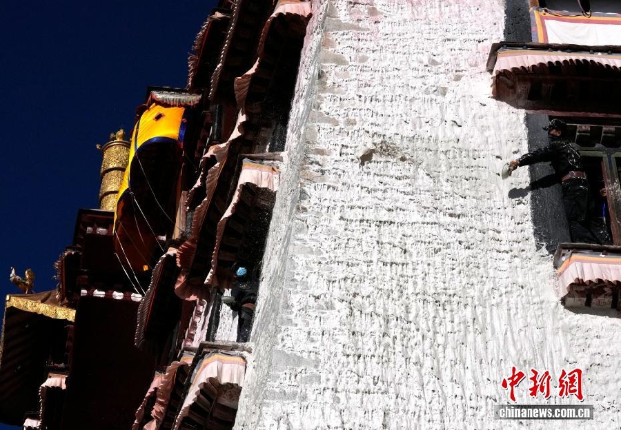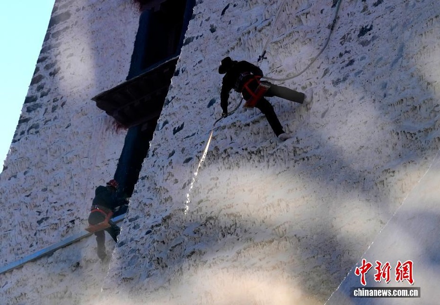 22 октября, «Жэньминь жибао» онлайн -- 22 октября в Лхасе Сицзанского автономного района на юго-западе Китая началась комплексная покраска дворца Потала, объекта Всемирного наследия ЮНЕСКО. Работники администрации дворца и местные жители приняли участие в ежегодных работах по обновлению фасада знаменитого памятника.-0-