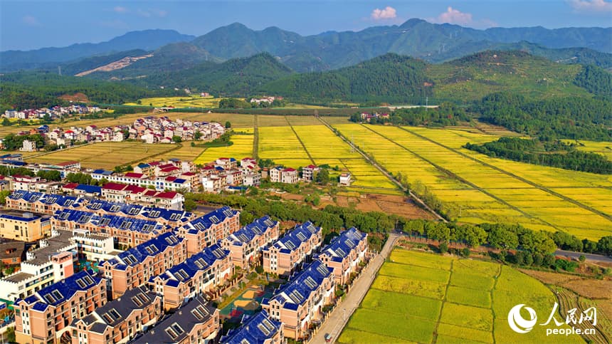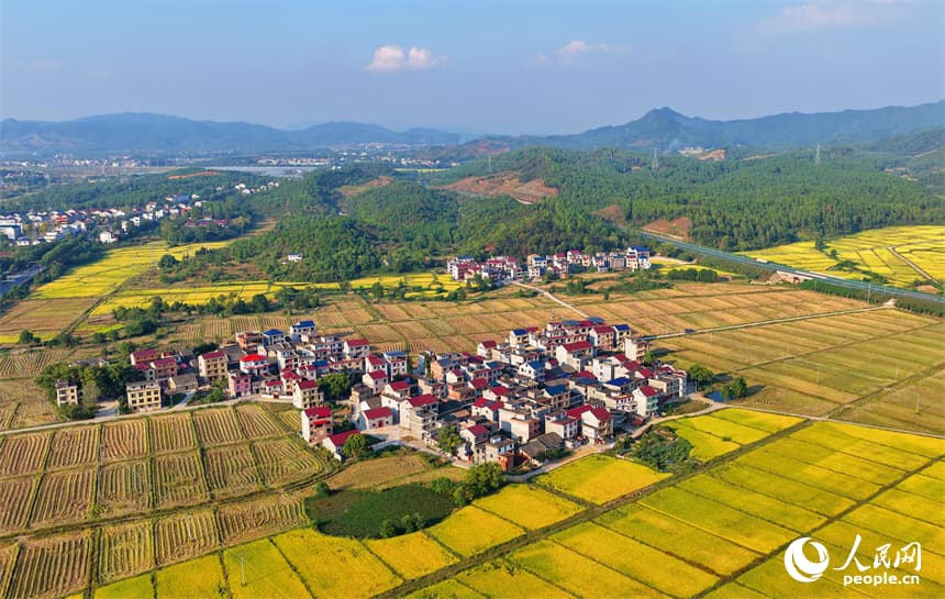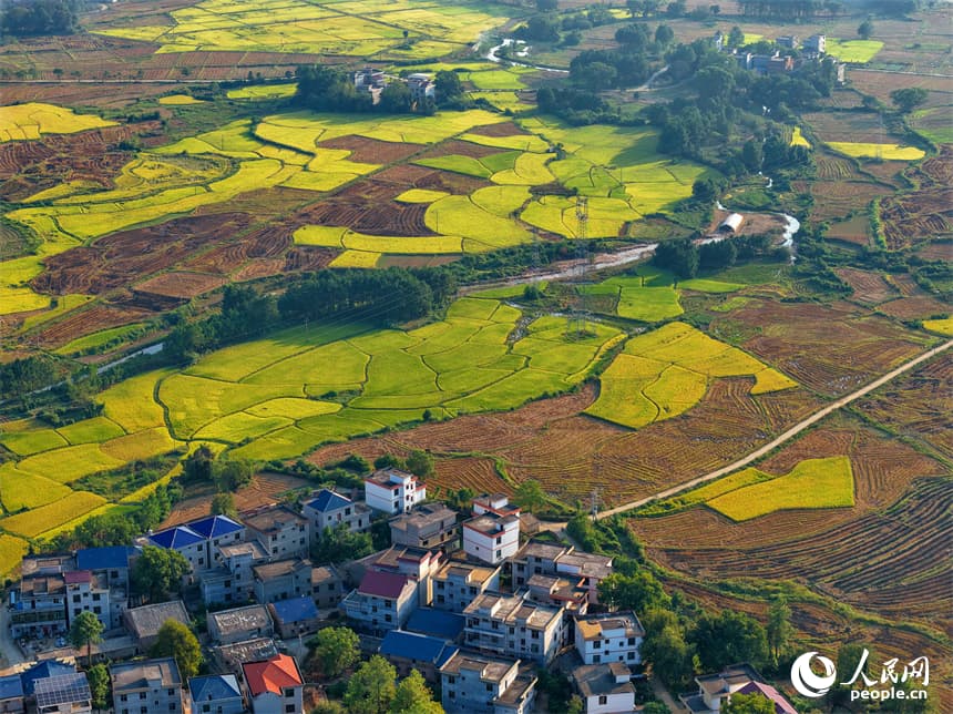31 октября, «Жэньминь жибао» онлайн -- В поселке Лаоцяо уезда Цзишуй /провинция Цзянси, Юго-Восточный Китай/ осень окрасила деревни в яркие краски. Золотые рисовые поля гармонично соседствуют с холмами и домами местных жителей, создавая живописную картину сельской жизни в сезон сбора урожая. Об этом сообщает сайт «Хуаньцюван».-0-