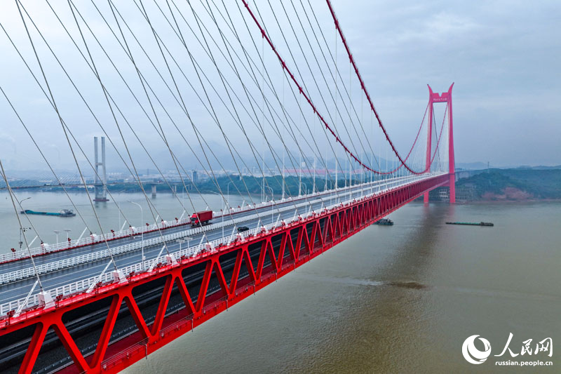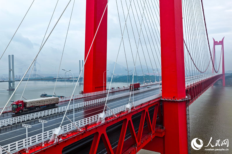 7 ноября, «Жэньминь жибао» онлайн -- 6 ноября официально началось движение по железнодорожно-автомобильному мосту через реку Янцзы в Тунлине провинции Аньхой. Это первый в мире двухъярусный вантовый и подвесной мост двойного назначения. Его длина составляет 11,88 км. Верхний уровень моста представляет собой шестиполосное шоссе для автотранспорта, а нижний предназначен для высокоскоростных и обычных поездов.