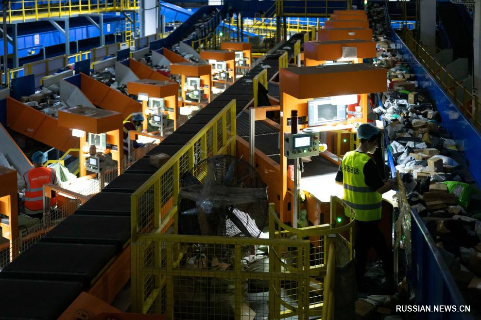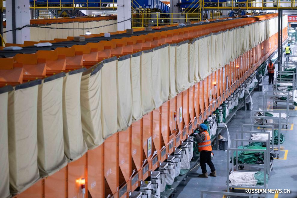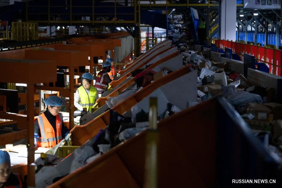 Харбин, 11 ноября /Синьхуа/ -- Накануне грандиозной онлайн-распродажи по случаю "Дня холостяка" /11 ноября/ сотрудники в распределительном центре курьерской корпорации "Почта Китая" в городе Харбин /пров. Хэйлунцзян, Северо-Восточный Китай/ круглосуточно работают над сортировкой, погрузкой и доставкой посылок ввиду пиковой логистической нагрузки.