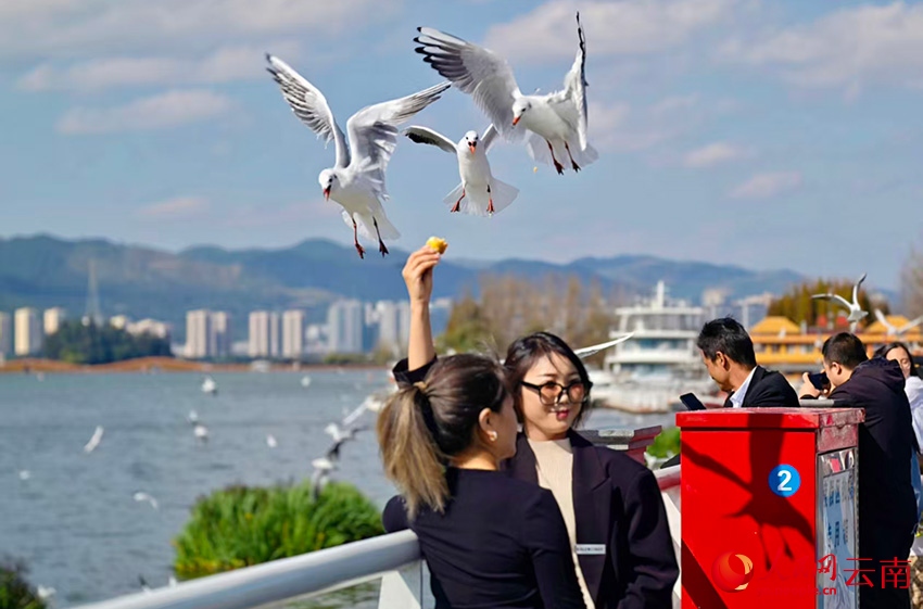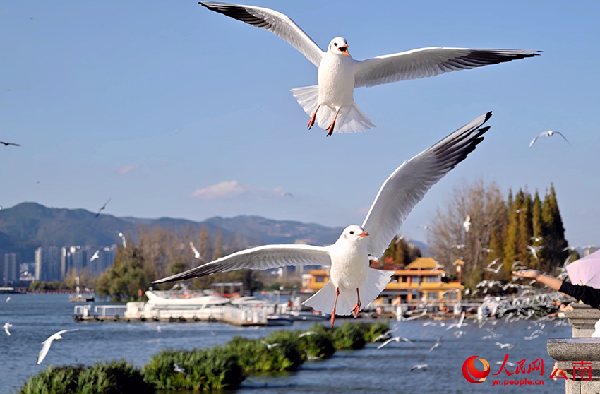 19 ноября, «Жэньминь жибао» онлайн -- С наступлением ноября в город Куньмин /провинция Юньнань, Юго-Западный Китай/ прилетели озерные чайки, открыв ежегодный сезон наблюдения за птицами.