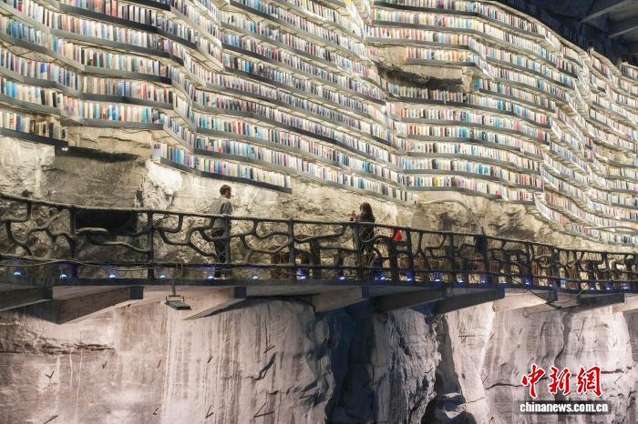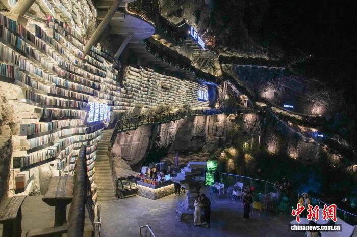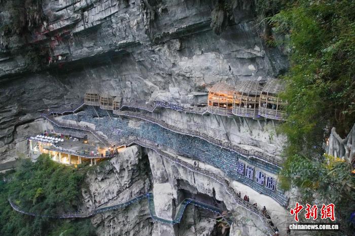 21 ноября, «Жэньминь жибао» онлайн -- Необычный книжный магазин, буквально «встроенный» в скалу над карстовой воронкой, стал новой меккой для путешественников в Гуанси-Чжуанском автономном районе.