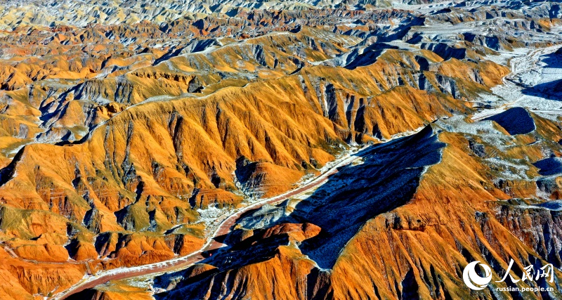 27 ноября, «Жэньминь жибао» онлайн -- 24 ноября после снегопада разноцветные скалы в Национальном геопарке Чжанъе Данься в провинции Ганьсу покрылись белой пеленой. Белый снег и красочные формы рельефа Данься гармонично переливаются, создавая неповторимую картину очаровательной природы.