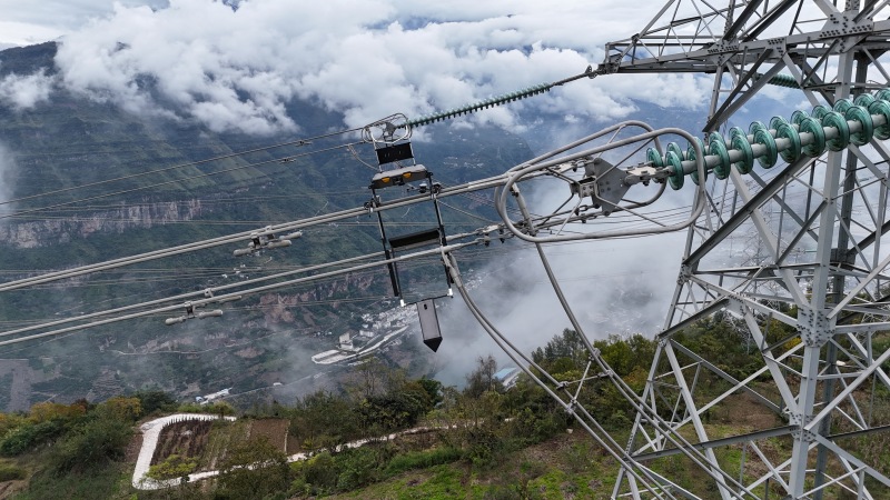 В Сычуани осуществляют проверку ЛЭП сверхвысокого напряжения с помощью беспилотников и роботов-дефектоскопов