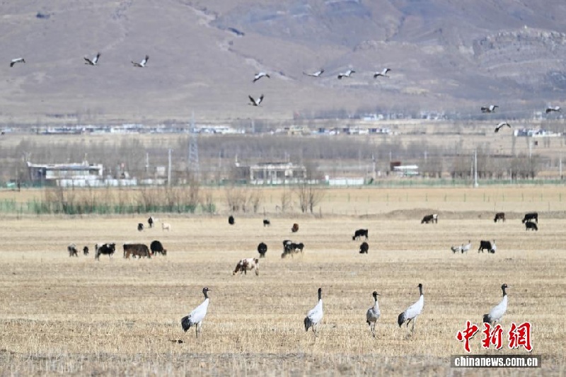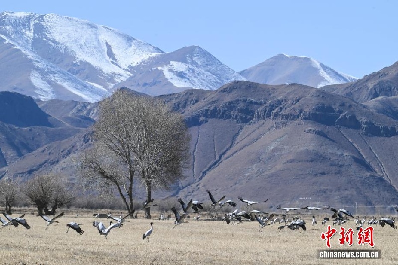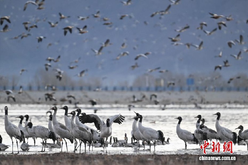 28 ноября, «Жэньминь жибао» онлайн -- В природный заповедник уезда Линьчжоу Сицзанского автономного района /Юго-Западный Китай/ на зимовку прилетает большое количество черношейных журавлей. Птицы кормятся в водохранилище Кацзы, на сельскохозяйственных полях и водно-болотных угодьях. Уезд расположен в верховьях реки Лхаса и в бассейне реки Пэнбо, что делает его одним из основных мест зимовки этих редких птиц, сообщает сайт «Хуаньцюван».