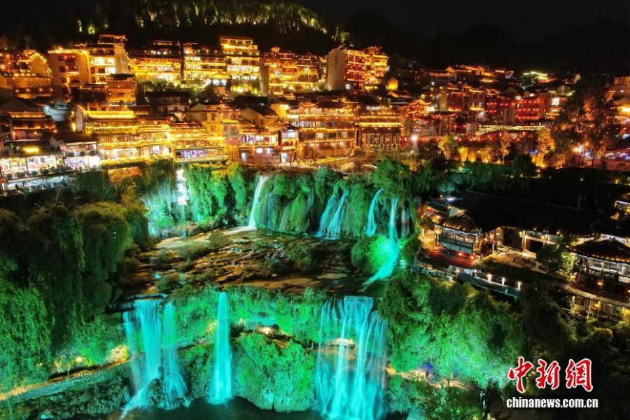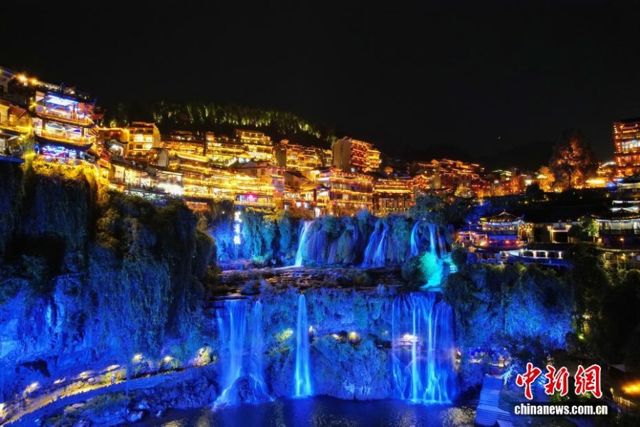 5 декабря, «Жэньминь жибао» онлайн -- Ночные виды поселка Фужун в провинции Хунань (Центральный Китай) очаровывают туристов: под сиянием огней традиционных домов на сваях бурлит 60-метровый водопад, благодаря которому этот поселок и получил свое знаменитое название – «тысячелетний поселок на водопаде».