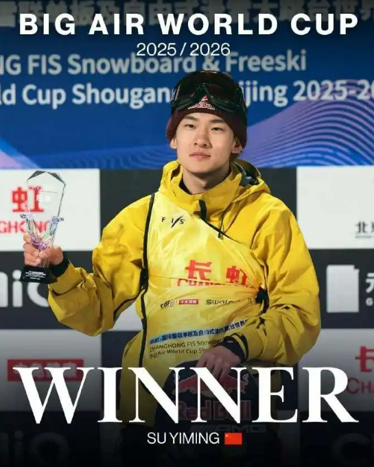16 декабря, «Жэньминь жибао» онлайн -- Согласно информации на официальном аккаунте Международной федерации лыжного спорта и сноуборда на китайском языке, китайский спортсмен Су Имин стал победителем общего зачёта Кубка мира по сноуборду в дисциплине «биг-эйр» сезона 2025–2026 годов.