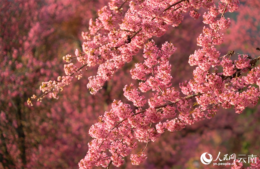 26 декабря, «Жэньминь жибао» онлайн -- Пока северные регионы Китая укрыты снегом, в горах Уляншань провинции Юньнань /Юго-Западный Китай/ уже веет весной. С декабря в местной Долине сакуры расцвели десятки тысяч деревьев зимней вишни. Ярко-розовые цветы на фоне изумрудных чайных плантаций превращают долину в настоящий райский уголок посреди зимы, привлекая множество туристов. Об этом сообщает сайт «Хуаньцюван».-0-