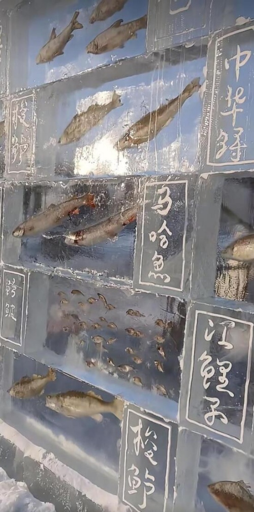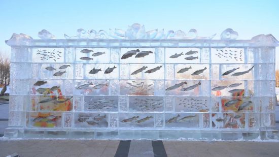Как сообщается, для привлечения туристов в зимний сезон власти Тунцзяна украсили все местные достопримечательности разнообразными скульптурами изо льда и снега, а также построили развлекательные объекты. «Рыбная» ледяная стена является искусным сочетанием традиционной культуры рыболовства местного народа хэчжэ /нанайцев/ и современного искусства ледяных скульптур.-0-