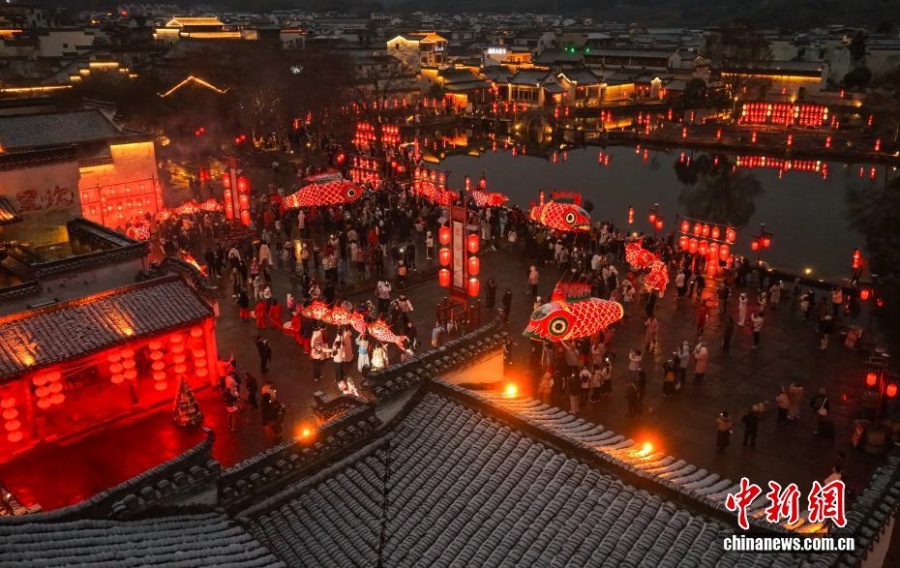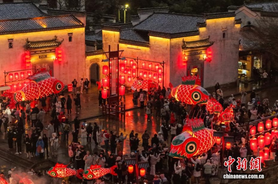 Фонари-рыбы освещают зимнюю ночь в древней деревне провинции Аньхой