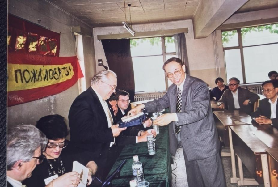 Симпозиум закончился в 12 часов. Садовничий принимал более дюжины ректоров всемирно известных университетов в ресторане за подиумом Актового зала. Садовничий и другие руководители Московского государственного университета сидели по одну сторону длинного обеденного стола, а ректоры всемирно известных университетов и другие гости – по другую. Ректору Сюй Чжихуну было предоставлено лучшее место – напротив Садовничего. Слева от ректора Сюй сидел лауреат Нобелевской премии по физике г-н Дин Чжаочжун. Мне посчастливилось сидеть между ректором Сюй и Дин Чжаочжуном и быть их переводчиком. Именно тогда я узнал, что Дин Чжаочжун прилетел из Швейцарии на юбилей Московского государственного университета. Он также рассказал мне, что он родом из Жичжао, провинция Шаньдун. Хотя этот обед был не таким шикарным, как ужин в Кремле на следующий вечер, он тоже был весьма роскошным, что свидетельствовало о гостеприимстве россиян.