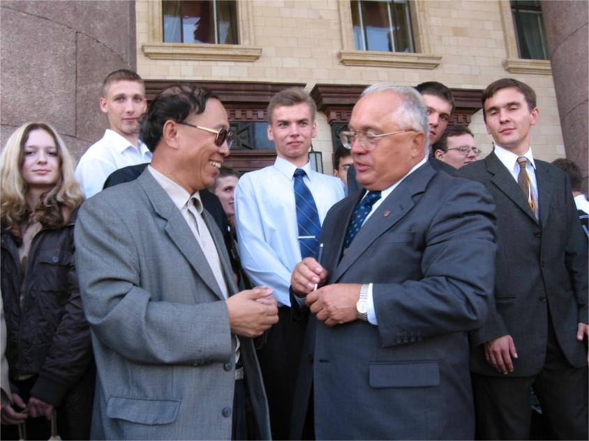 25 января 2015 года преподаватели и студенты Московского государственного университета собрались в зале новой библиотеки, чтобы отметить 260-летие университета. Торжество провёл сам ректор Виктор Садовничий. Ему почти 80 лет, но он полон энергии и остроумия, громогласен и обладает чувством юмора, демонстрируя мудрость, логику, энергию и стиль выдающегося русского математика. В тот день на праздновании был один эпизод: ректор МГУ Садовничий лично вручил мне благодарственную грамоту в знак признания моей шестилетней работы в МГУ и произнёс импровизированную речь, представив меня преподавателям и студентам МГУ, присутствовавшим на торжестве, а также мою многолетнюю работу по укреплению обменов и сотрудничества между Пекинским университетом и МГУ. В заключении он с лёгкой долей юмора сказал: «Этот профессор Пекинского университета говорит по-русски лучше, чем русские. Если кто-то в этом сомневается, то мы попросим его выступить по-русски после вручения благодарственной грамоты!» Его остроумный язык вызывал смех у зрителей.