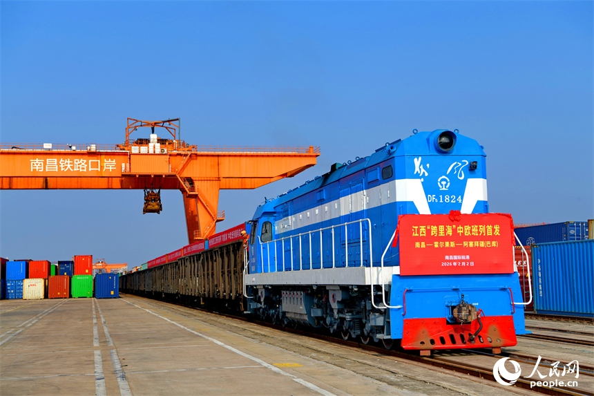 3 февраля, «Жэньминь жибао» онлайн -- 2 февраля из международного сухопутного порта города Наньчан отправился первый в провинции Цзянси транскаспийский поезд «Китай – Европа». Состав, груженный мраморными изделиями, хлопчатобумажными тканями, обоями и другими товарами, проследует через пограничный переход Хоргос в Казахстан, пересечет Каспийское море и в конечном итоге достигнет Баку, столицы Азербайджана.