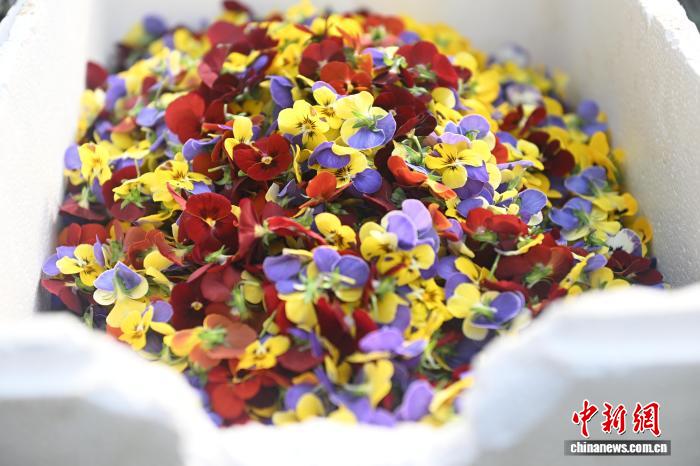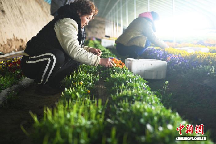 6 февраля, «Жэньминь жибао» онлайн -- В эти дни в центре выращивания съедобных декоративных цветов в деревне Хунлянъин уезда Юйчжун провинции Ганьсу /Северо-Западный Китай/ работники собирают урожай.
