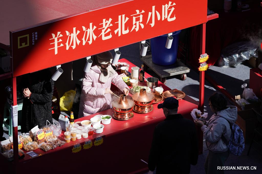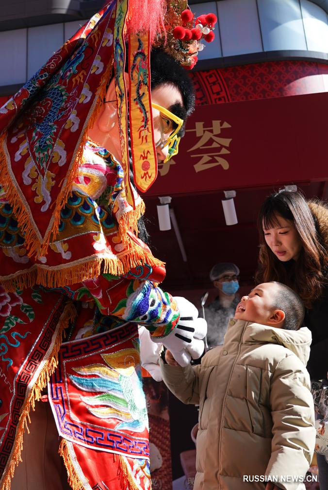 Пекин, 17 февраля /Синьхуа/ -- В понедельник, в канун праздника Весны /Чуньцзе, традиционный китайский Новый год по лунному календарю/, или по-китайски "Чуси", люди покупали новогодние подарки, пробовали традиционные уличные лакомства и участвовали в праздничных мероприятиях в коммерческом квартале Лунфусы столицы Китая.