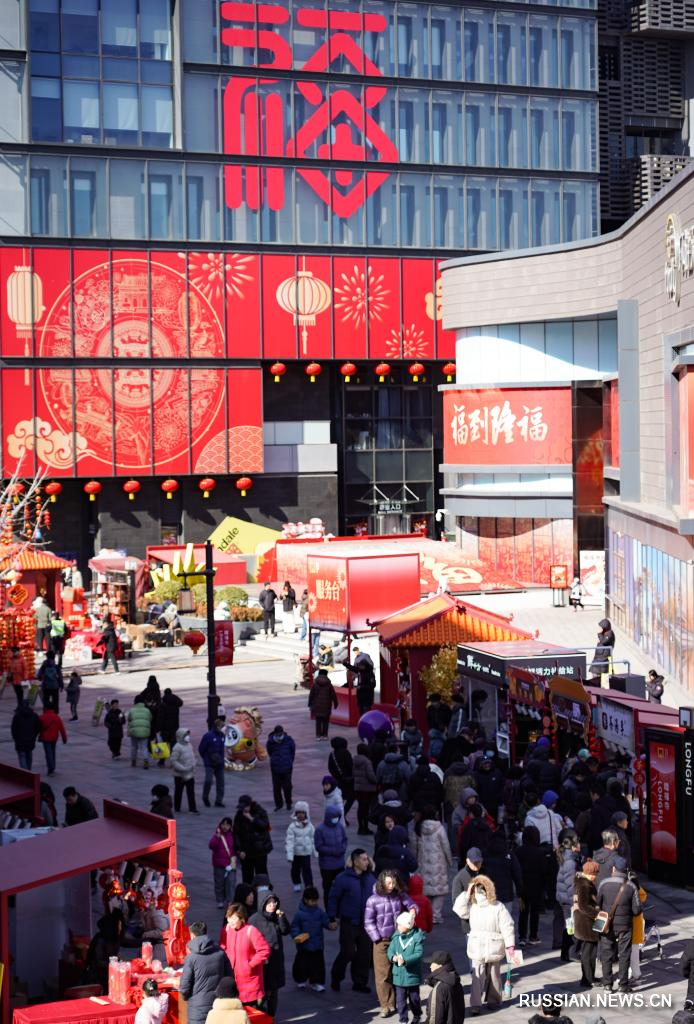 Оживленная праздничная атмосфера в пекинском коммерческом квартале Лунфусы