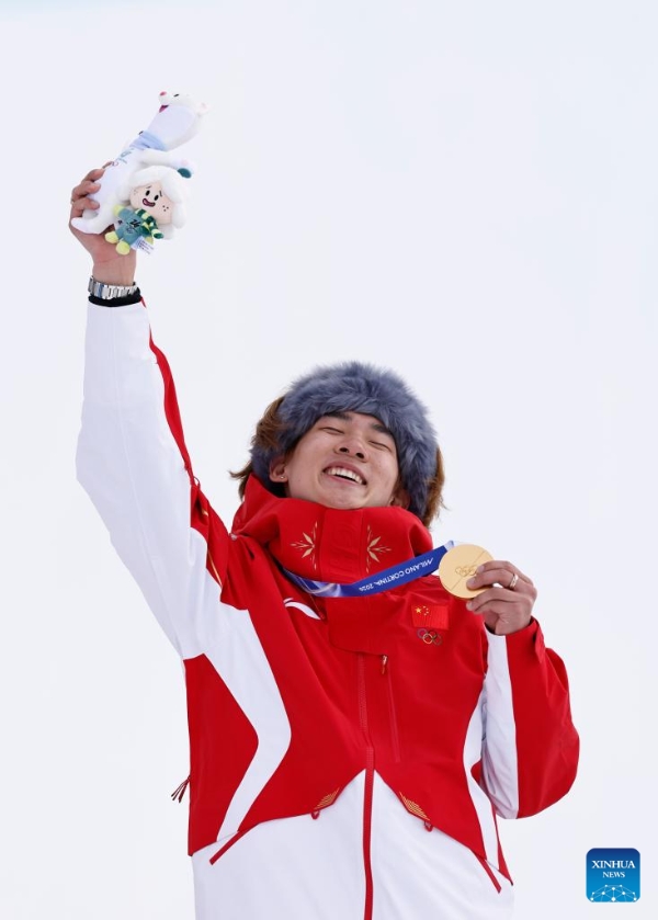 Су Имин завоевал первое золото Китая в соревнованиях по сноуборду /слоупстайл/ среди мужчин на зимних Олимпийских играх в Милане