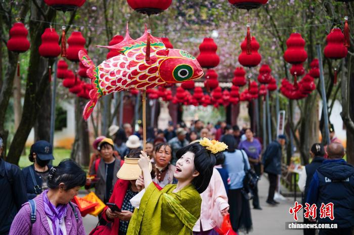 26 февраля, «Жэньминь жибао» онлайн -- 25 февраля, в девятый день первого месяца по лунному календарю, у храма Цзиньдянь /«Золотой храм»/ в Куньмине прошла традиционная храмовая ярмарка, история которой насчитывает более 400 лет. Праздник собрал множество горожан и туристов: люди приходили молиться о счастье и удаче, гуляли по парку, любовались цветами и наблюдали за выступлениями народных коллективов.