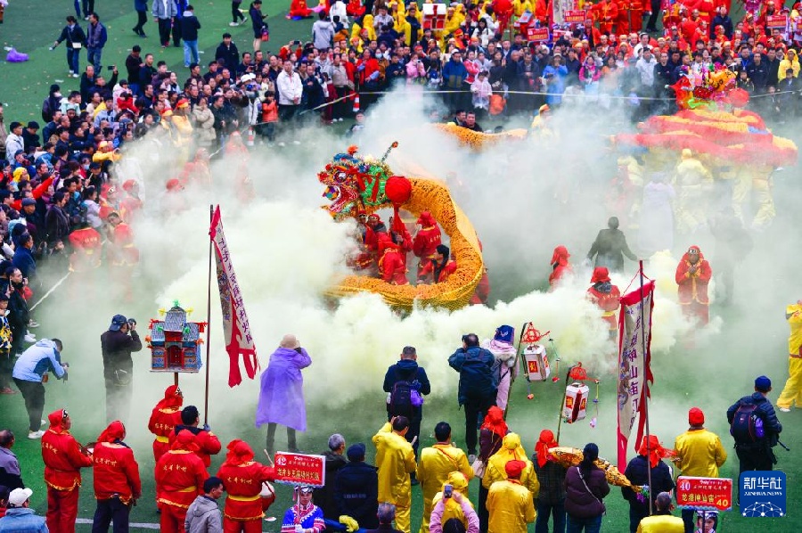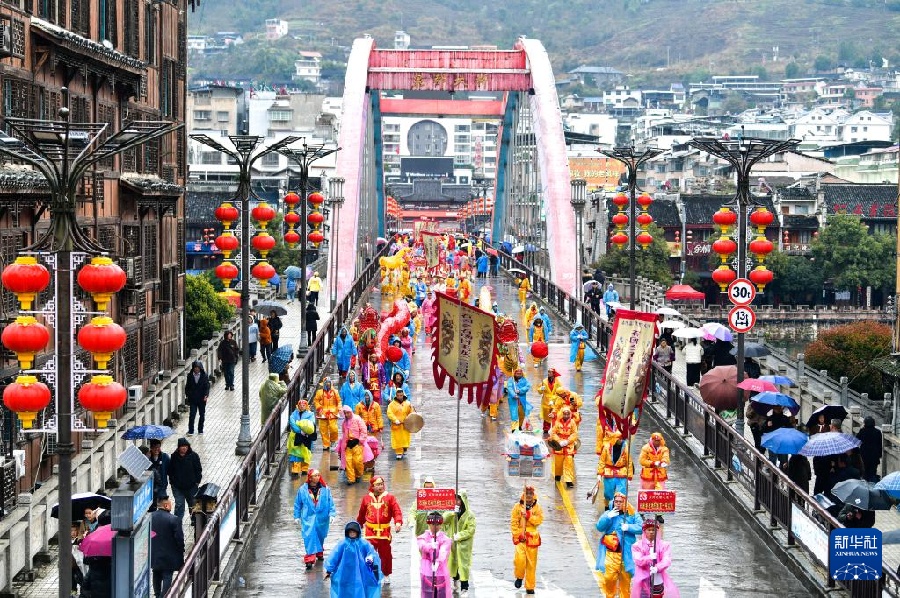 28 февраля, «Жэньминь жибао» онлайн -- 27 февраля в уезде Шицянь городского округа Тунжэнь провинции Гуйчжоу состоялся фестиваль Маолун народа гэлао, посвященный встрече Нового года. Артисты со всего Шицяня собрались в центре уезда, где провели шествие, молебен и соревнования по танцу Маолун, а также представили концерт мастеров народного творчества, чтобы весело встретить фестиваль и Новый год.