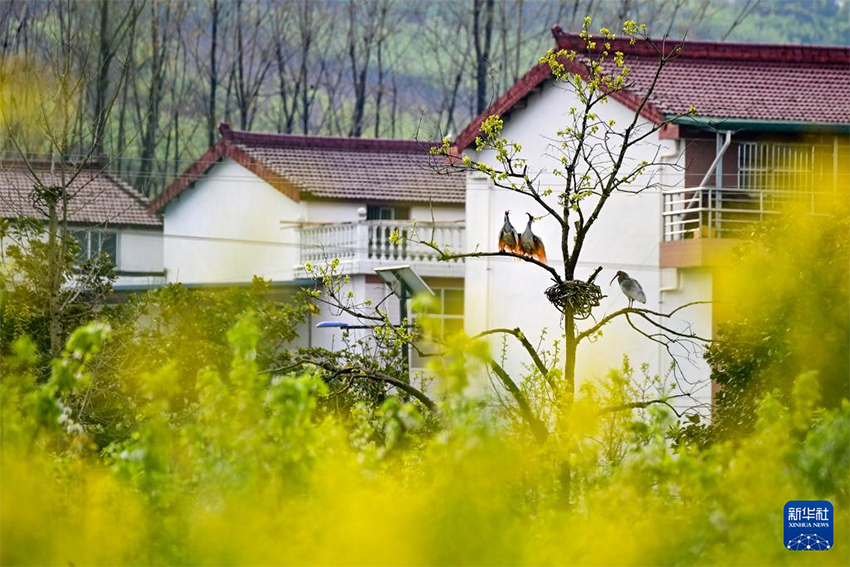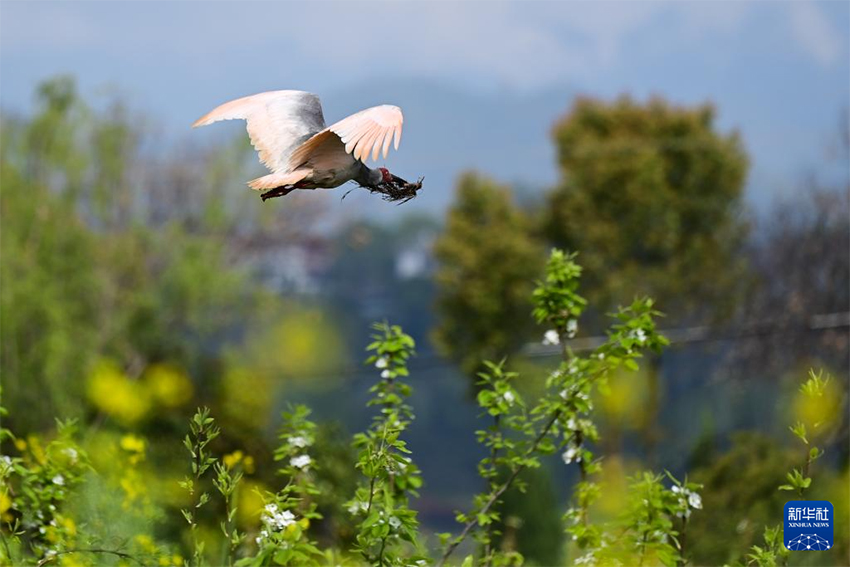 3 апреля, «Жэньминь жибао» онлайн -- В уезде Янсянь провинции Шэньси начался сезон размножения хохлатых ибисов