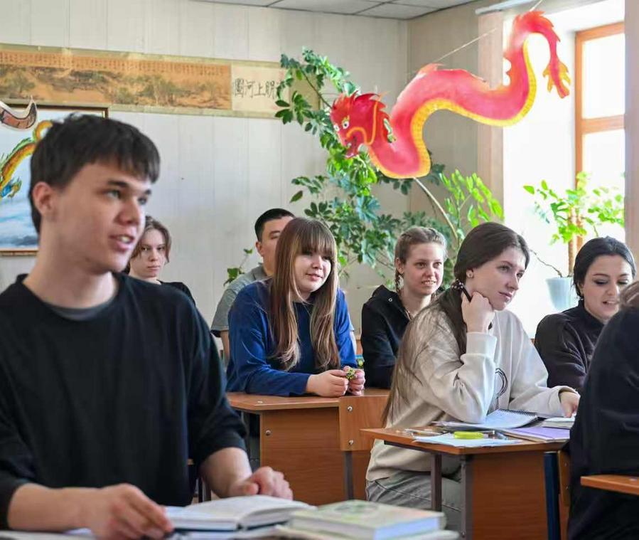 20 апреля, Чита, Россия. Китайские студенты Забайкальского государственного университета на занятии по русскому языку. /Фото: Синьхуа/