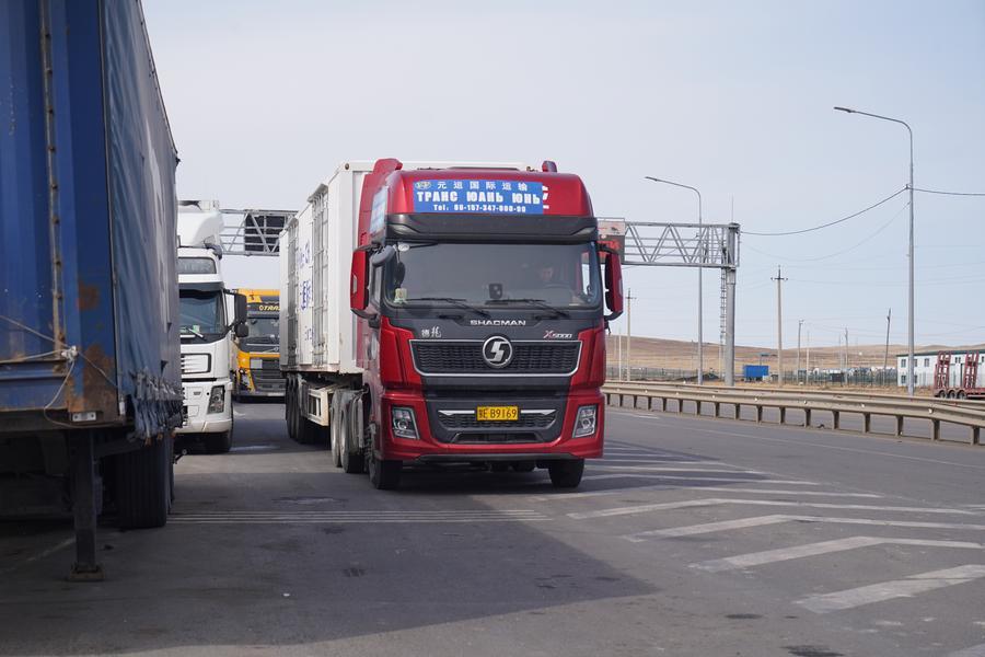 22 апреля, Забайкальск, Россия. Китайские грузовые автомобили ожидают прохождения таможни на российском пункте пропуска Забайкальск для выезда в Китай. /Фото: Синьхуа/